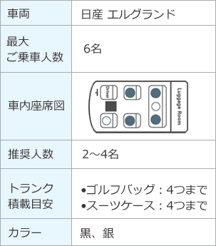 エルグランドは3~4名様の小グループでの移動にどうぞ。